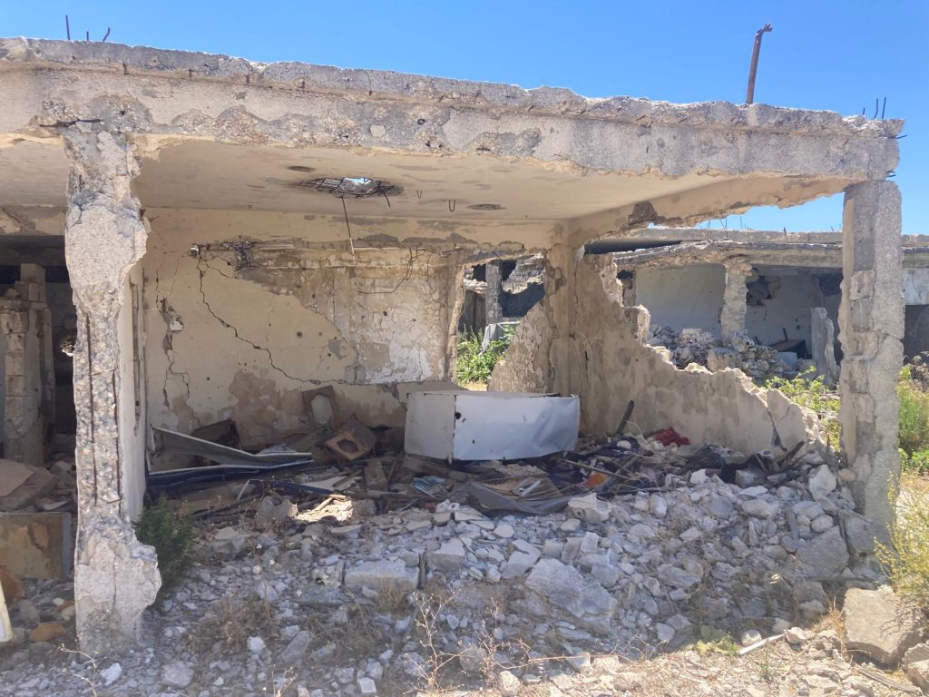 Even now, 8 months after the fall of Assad, Kabineh is a ghost town. Every single home has been bombed and shelled hundreds of times. A handful of residents – less than a dozen – have started to visit again, hoping to rebuild a single room so they can finally move their families out of the tent camps along the Turkish border that they have been stuck in for over a decade. There is no electricity, there is no food, and there are no working wells. The only water comes in small tanks in the back of pickup trucks.